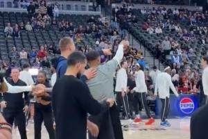 赛前,威少与约基奇在投篮热身时亲切互动,两人短暂寒暄后告别。