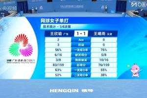 体育资讯11月18日讯 全运会网球女单1/4决赛,王欣瑜与王曦雨上演“左右互搏”。