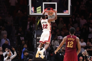 2025年11月11日,热火主场加时140-138战胜骑士,加时赛最后0.4秒,米切尔命中底角高难度准绝平三分;随后热火前场开球,跑出了一个完美的界外球空接战术,维金斯长驱直入空接完成压哨绝杀。