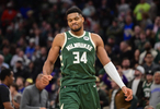 上半场,字母哥出战14分钟,12投7中,罚球1中1,得15分6板2助1盖帽。