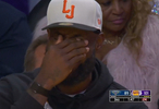坐在场边的詹姆斯看到这一幕后捂住了双眼,已经笑得不行了。