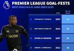 英超历史进球最多的比赛排行
