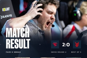 来到长枪局,FaZe头铁三人带包打B,大表哥与jcobb佯攻A点被杀,3DMAX扳回一分。第17回合,FaZe强冲A点得手,jcobbb再轰三杀拿到赛点,最终3DMAX毫无还手之力,FaZe以13-5拿下图二,两图横扫淘汰3DMAX,FaZe进入2-2组准备地狱归来。