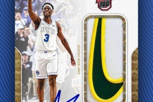 在赛后,他比赛中穿着的球鞋已经被联盟授权方拿走并裁切了一部分,做成了仅此一张的首秀球星卡。