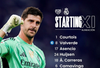 替补:13-卢宁、43-梅斯特雷、3-米利唐、4-阿拉巴、9-恩德里克、11-罗德里戈、12-亚历山大-阿诺德、16-贡萨洛-加西亚、19-塞瓦略斯、20-弗兰-加西亚、23-费兰-门迪